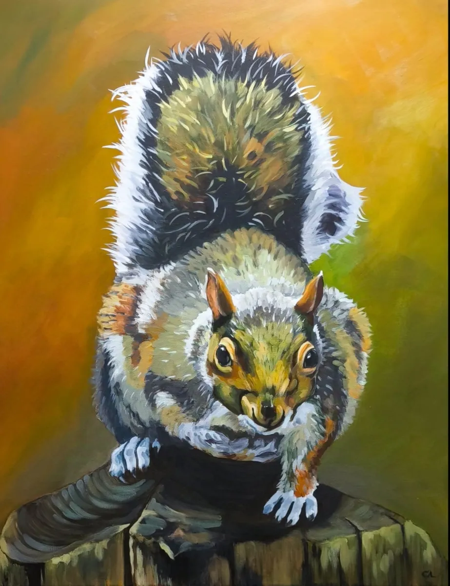 Representação de um esquilo, capturado numa composição de cores quentes. A obra reflete a presença tranquila do esquilo no seu ambiente natural, destacando a simplicidade e a beleza da vida selvagem. Ideal para quem procura uma peça pequena e impactante, com uma paleta de cores que trazem calor e personalidade ao espaço.