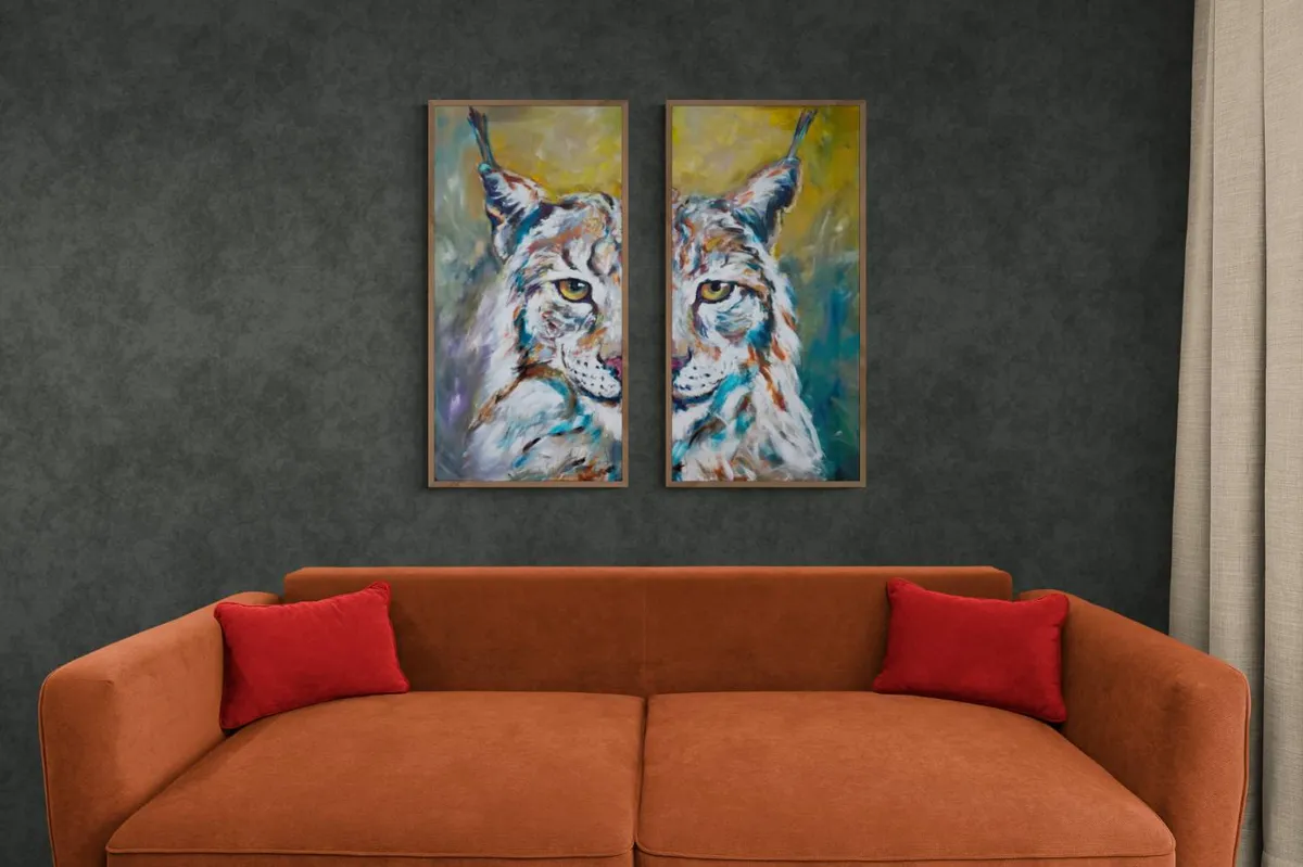 Half of Me e The Other Half formam um díptico que retrata a face de um lince, dividida em duas partes. Embora sejam projetadas para ser apreciadas em conjunto, cada tela possui forte presença e impacto visual por si só. A obra explora a dualidade e a complexidade de um ser, simbolizando a busca constante por completude. Quando vistas separadas, as telas mantêm a sua intensidade e o impacto emocional, refletindo diferentes aspectos da essência do lince. Quando unidas, elas formam uma imagem coesa, mas a fragmentação nas telas transmite a ideia de que a verdadeira identidade vai além do que os olhos podem ver. Ideal para quem procura uma peça que tenha impacto tanto em conjunto quanto isoladamente, Half of Me e The Other Half são perfeitas para espaços que valorizam arte com significado profundo e forte presença visual.